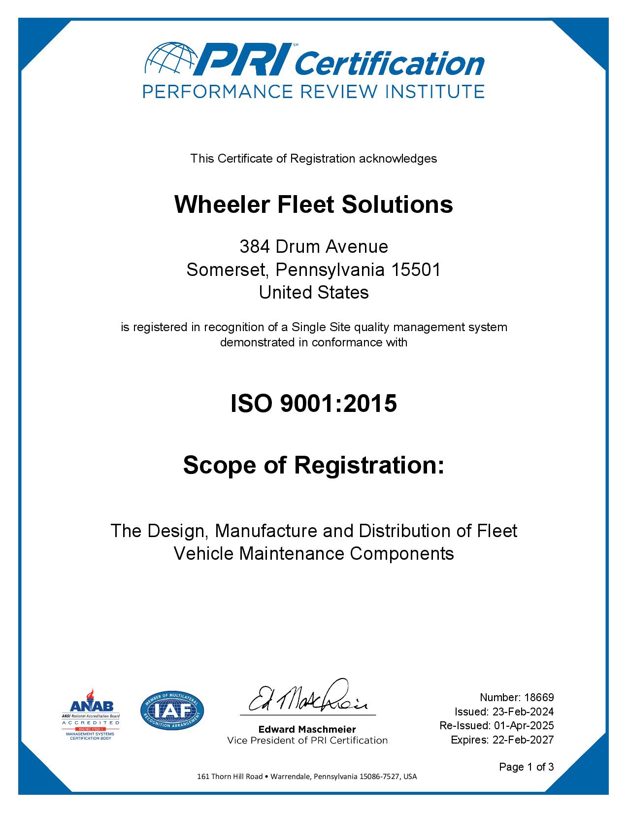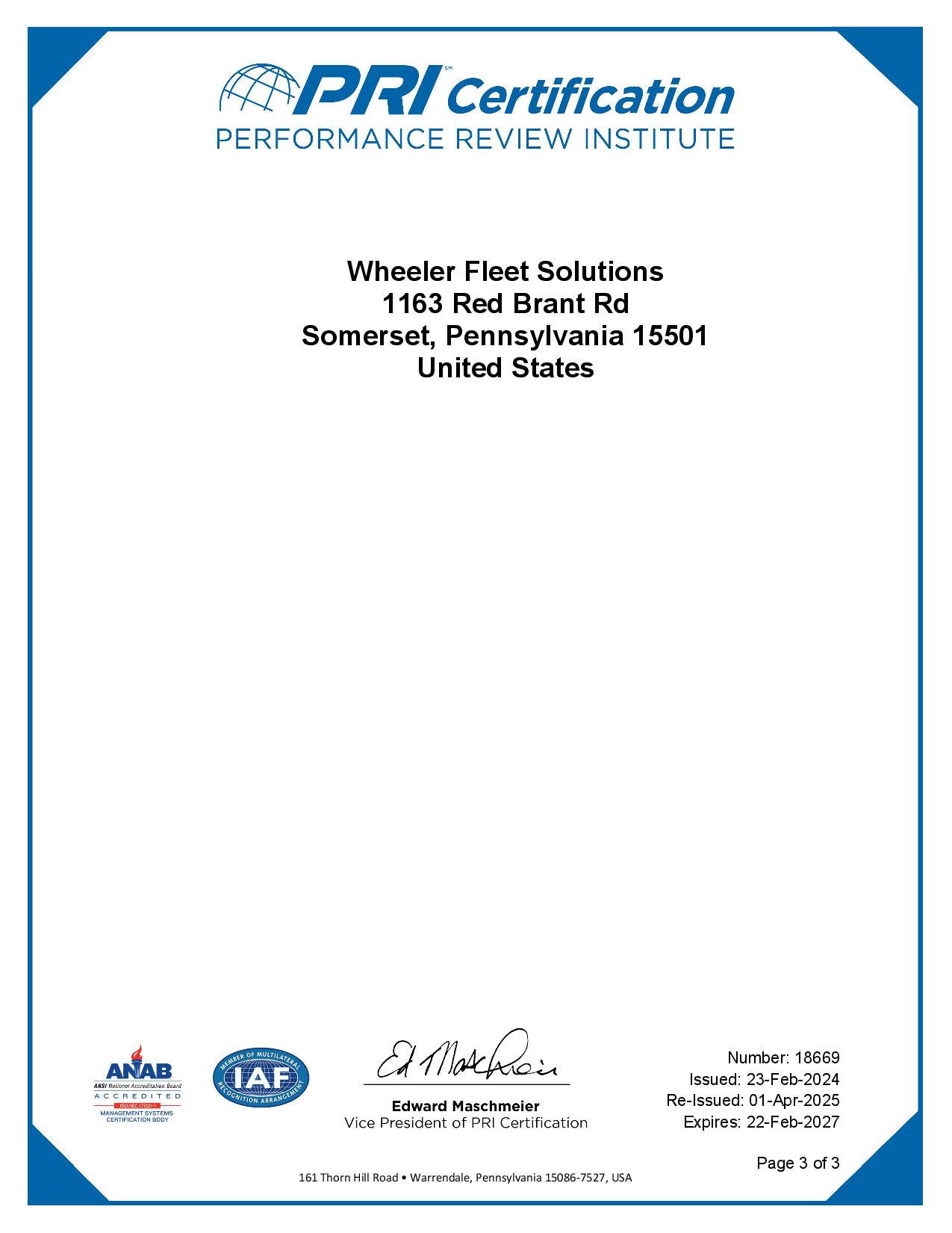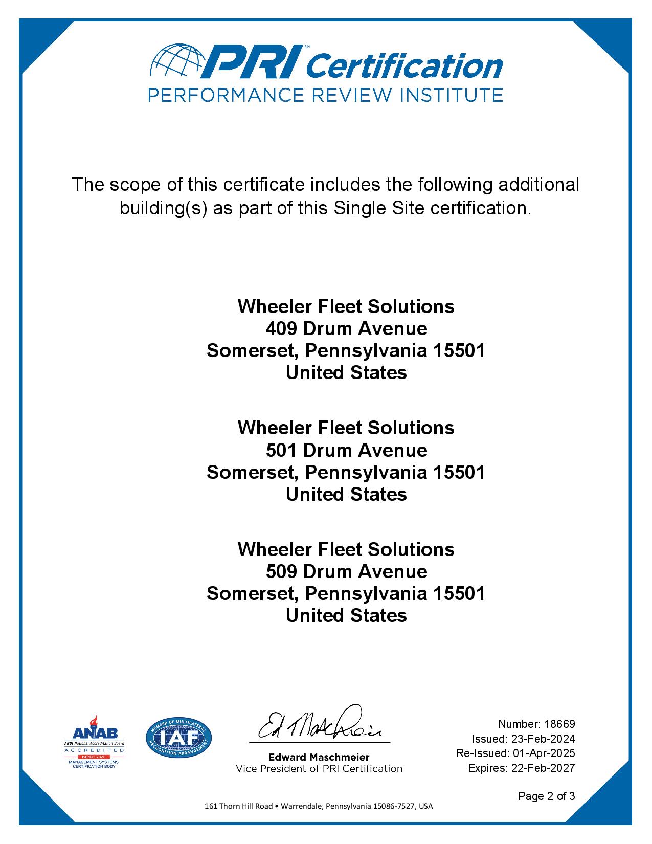 Wheeler Fleet Solutions Will Strive to Exceed Our Customers' Requirements and Satisfy Our Contractual Obligations by Utilizing Valued Employees to Provide Continual Improvement of Our Processes and Deliver Quality First - Quality Fast.
